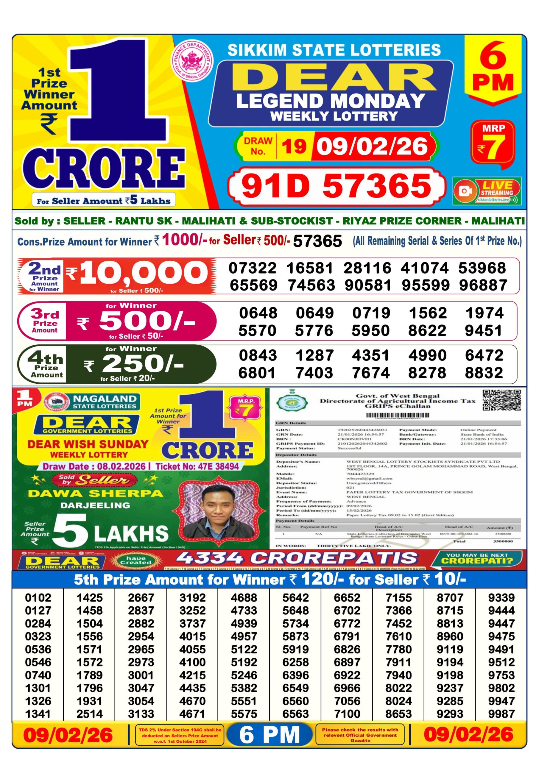 Lottery Sambad OLD RESULT 1 PM 6 PM 8 PM 09-02-2026