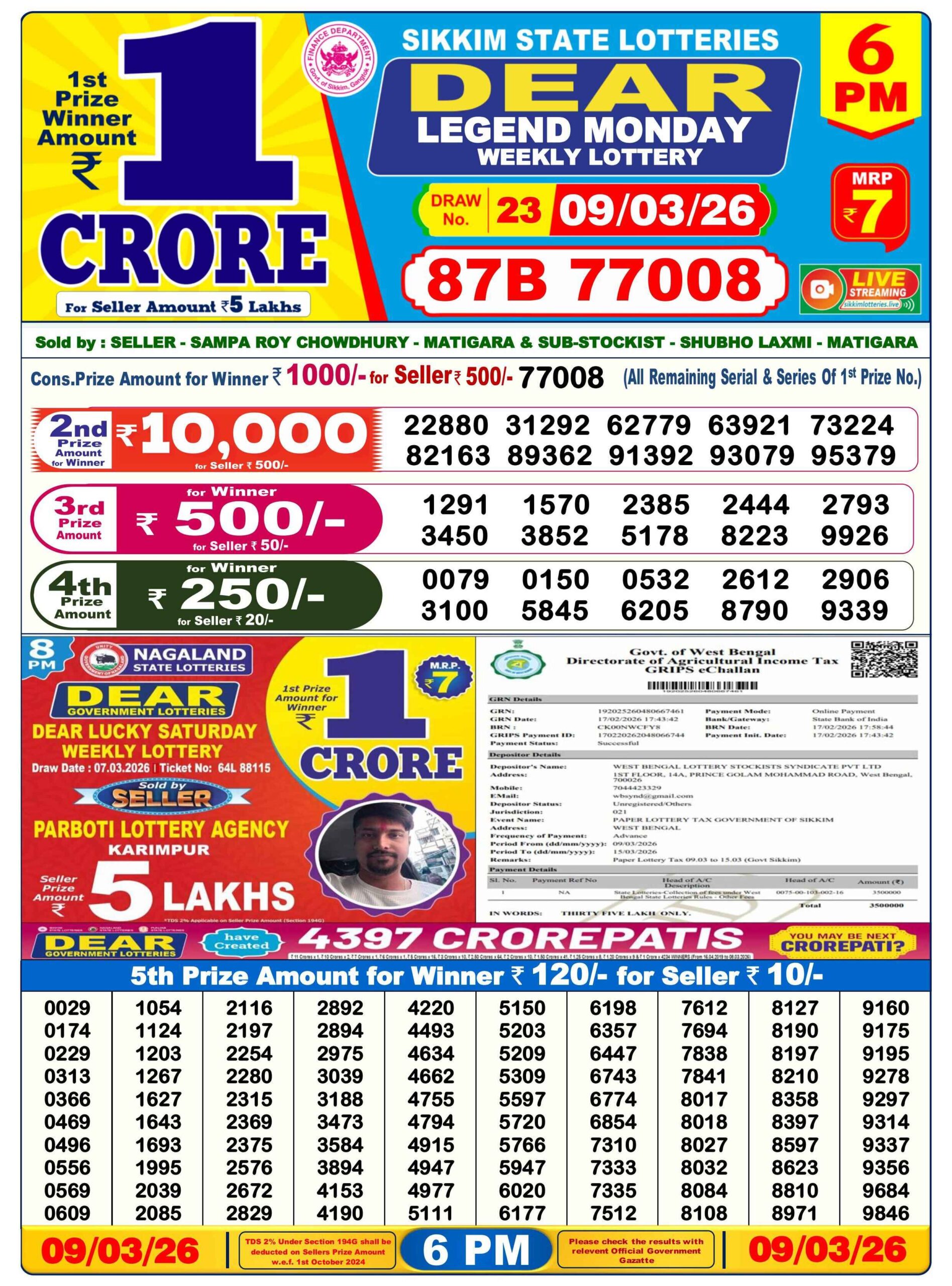 Lottery Sambad OLD RESULT 1 PM 6 PM 8 PM 09-03-2026