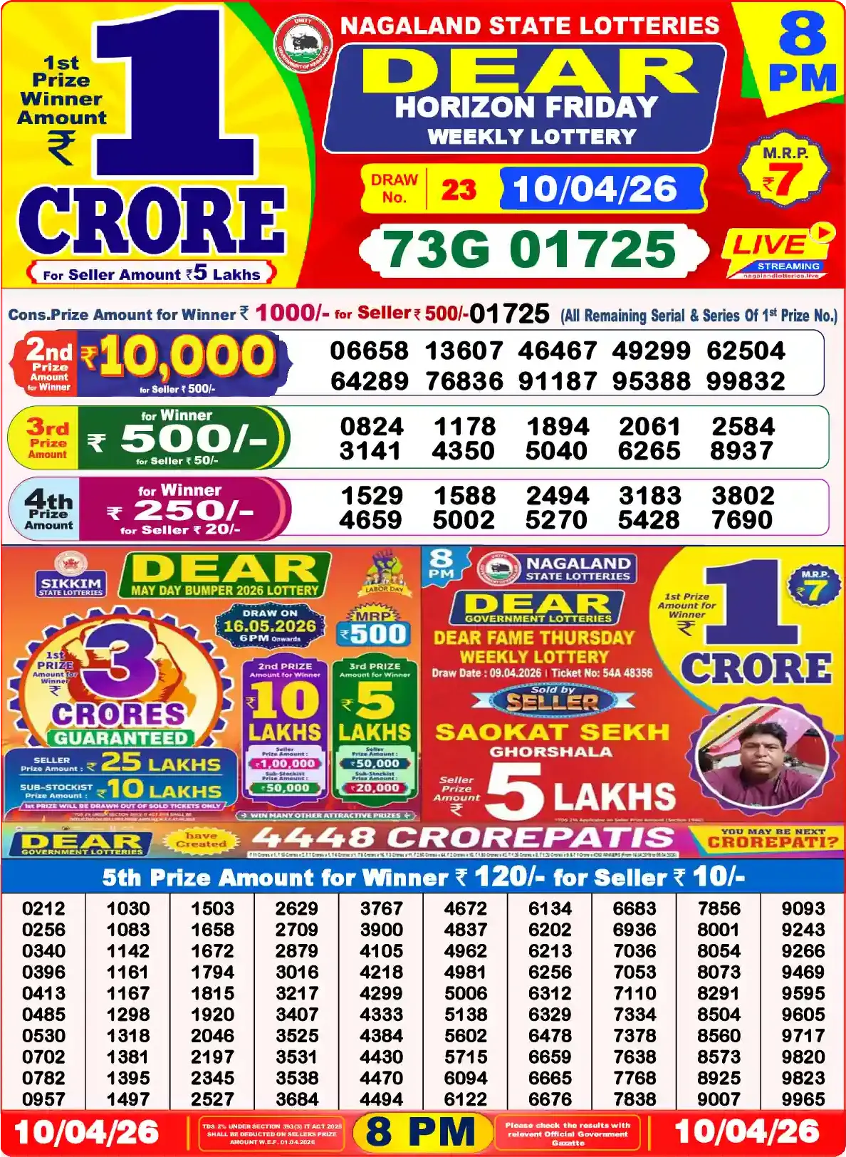 Lottery Sambad OLD RESULT 1 PM 6 PM 8 PM 10-04-2026
