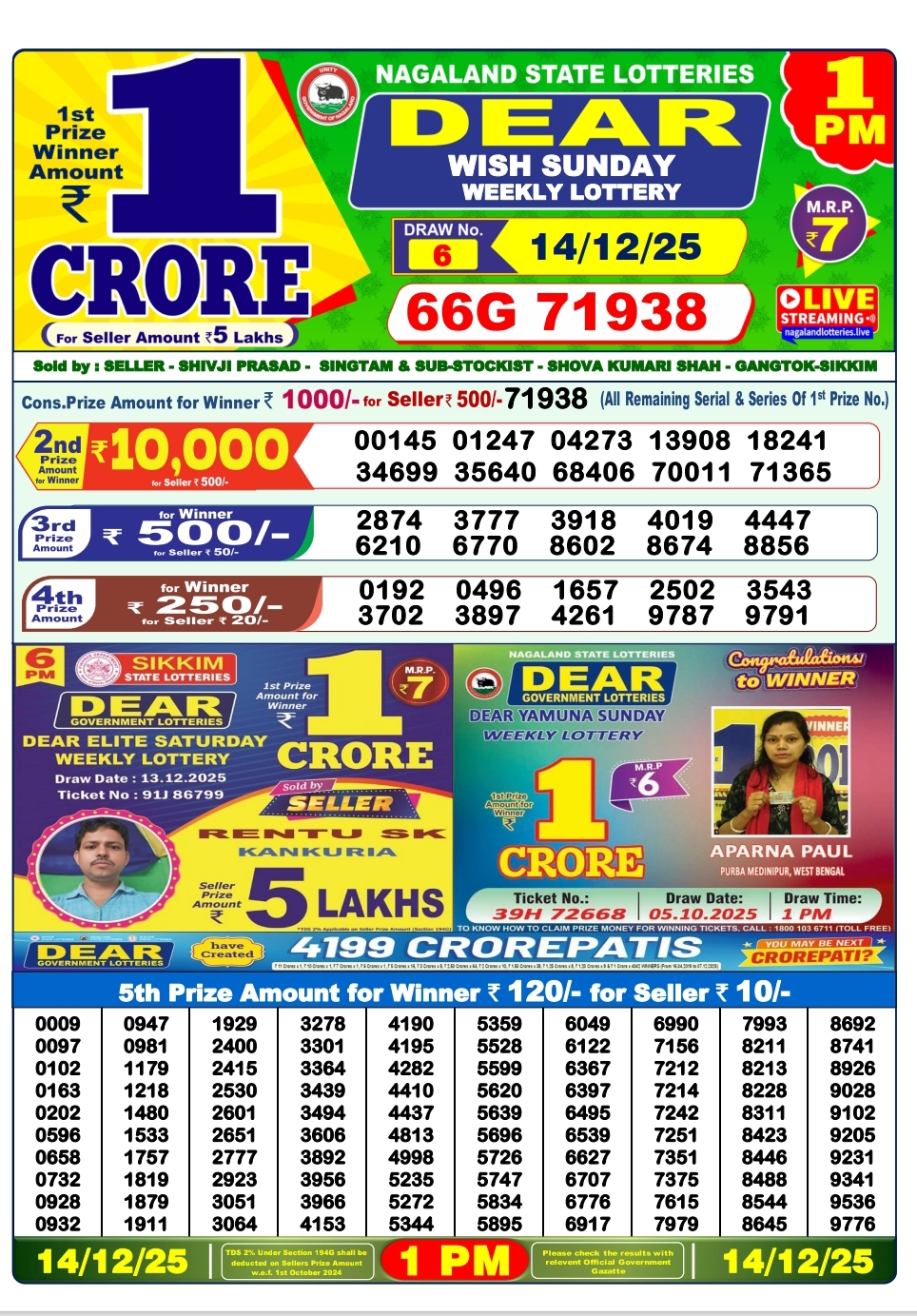 We update the results of 1, 6 and 8 pm very quickly every day. You can see the Nagaland Lottery results or dear lottery sambad results by simply refreshing the page when the results are published.