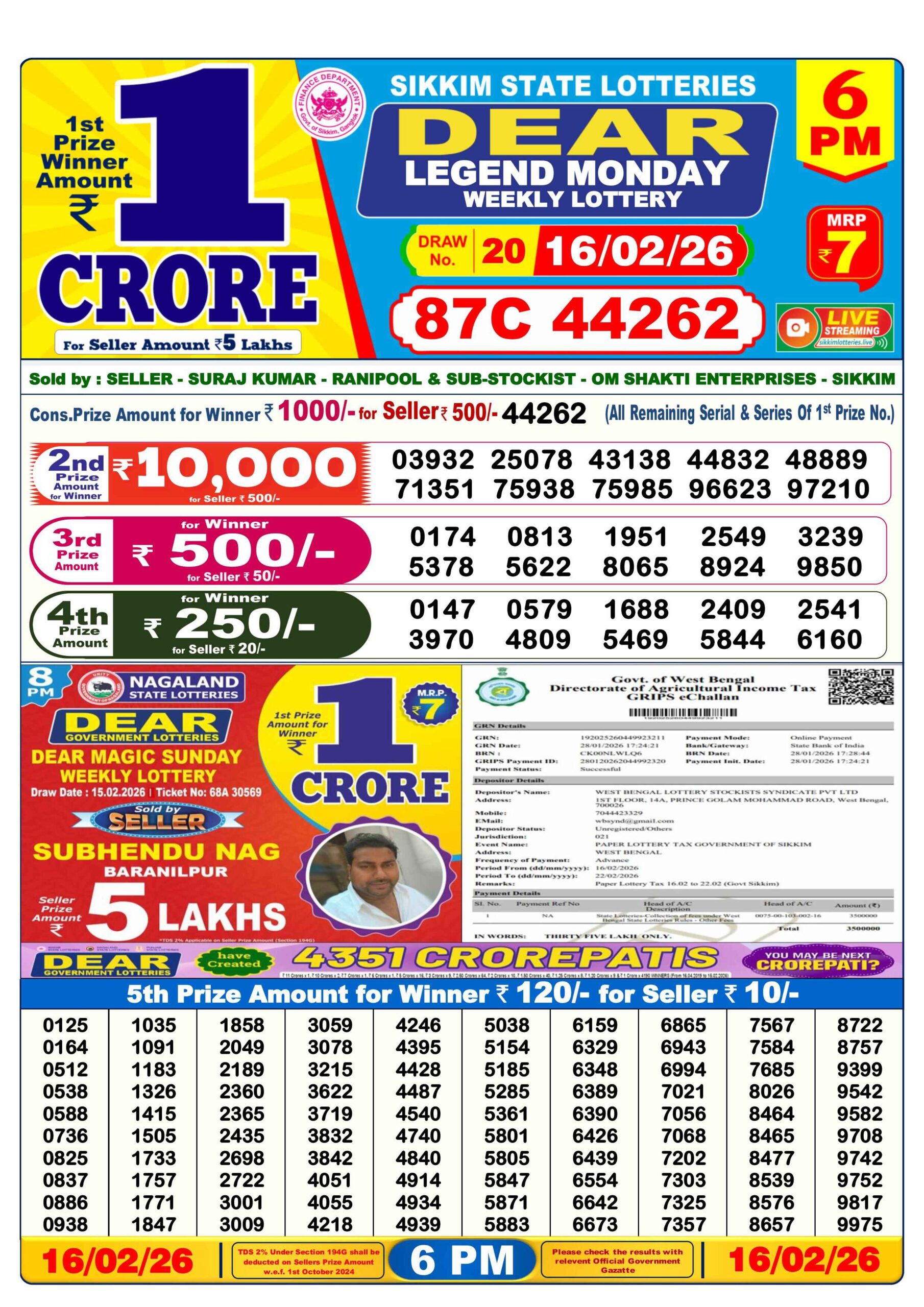 Lottery Sambad OLD RESULT 1 PM 6 PM 8 PM 16-02-2026
