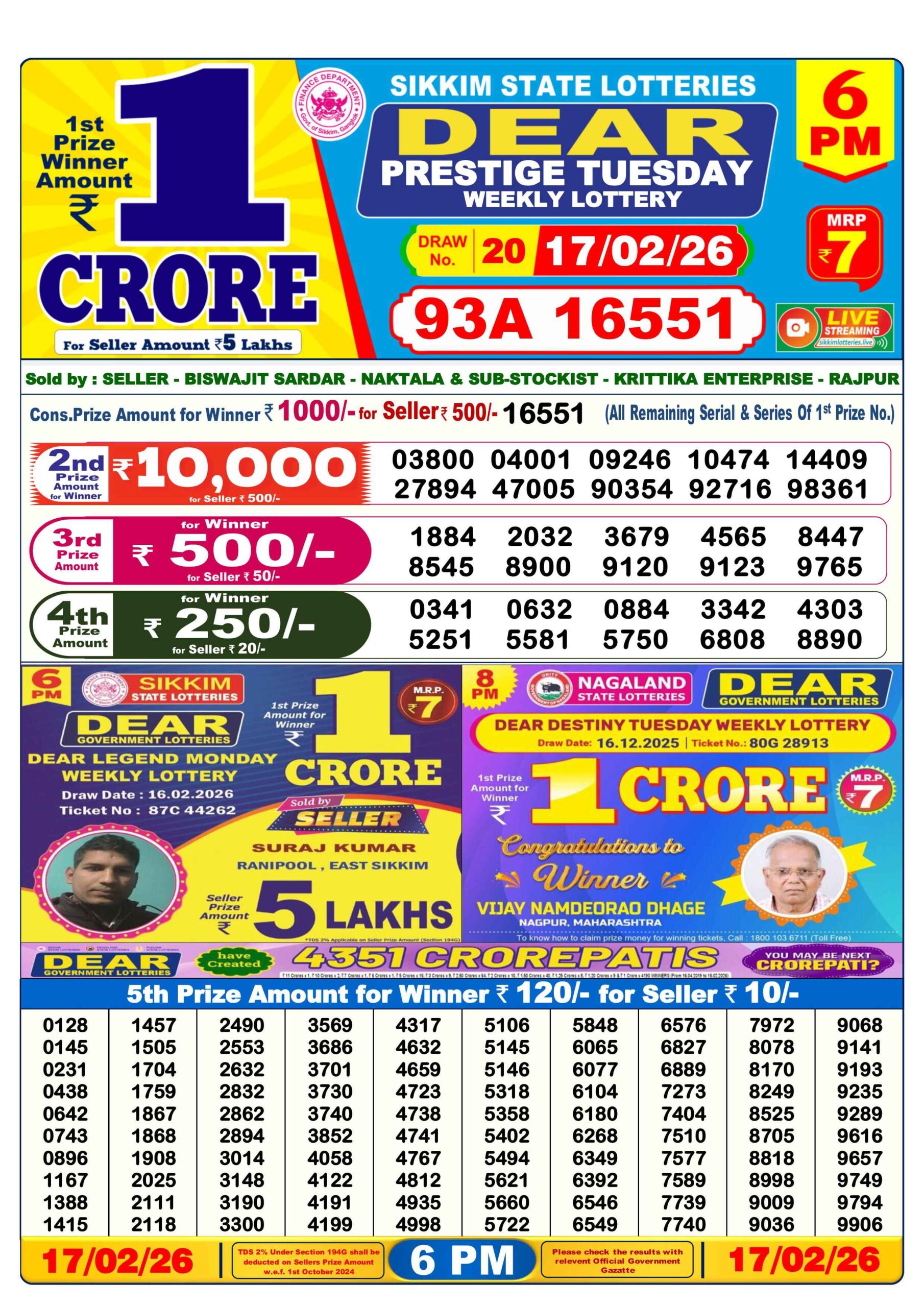 Lottery Sambad OLD RESULT 1 PM 6 PM 8 PM 17-02-2026