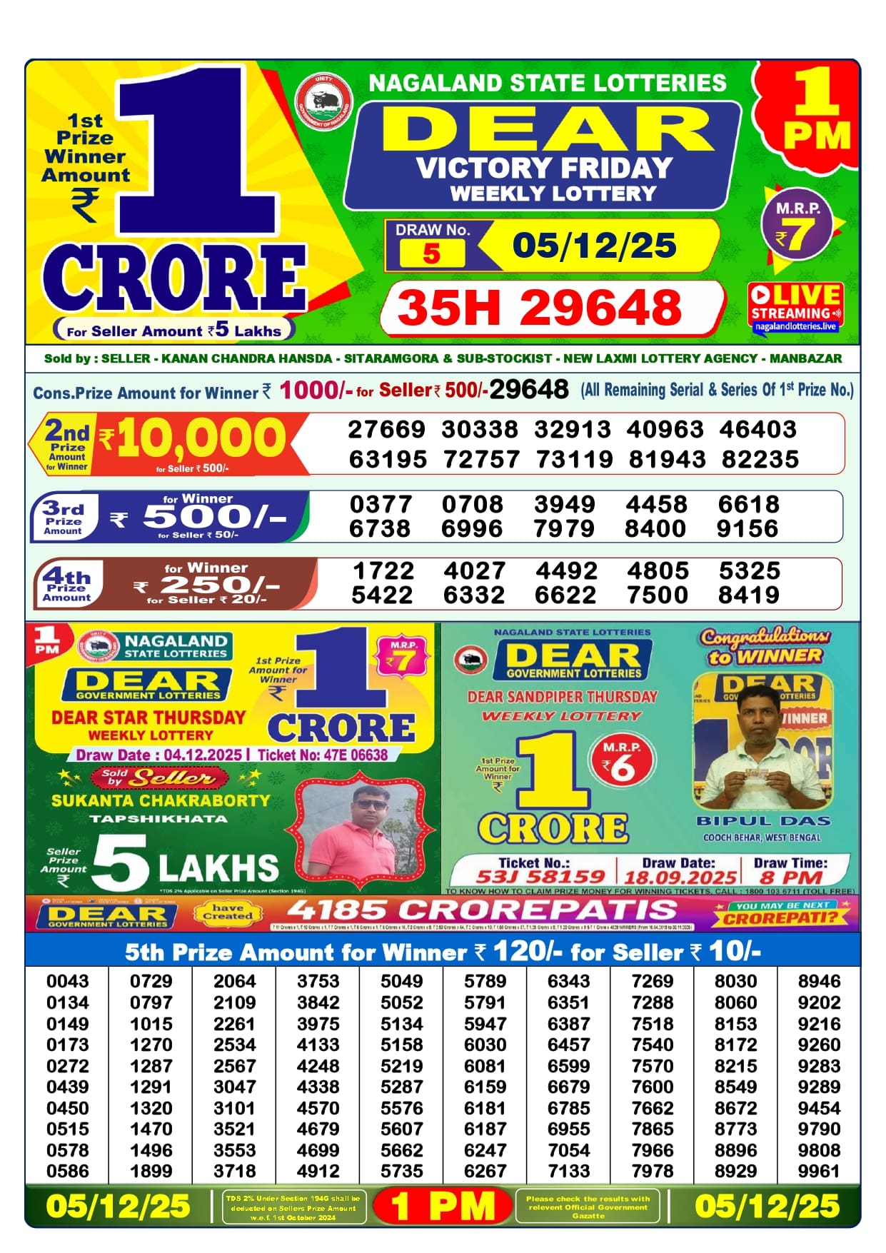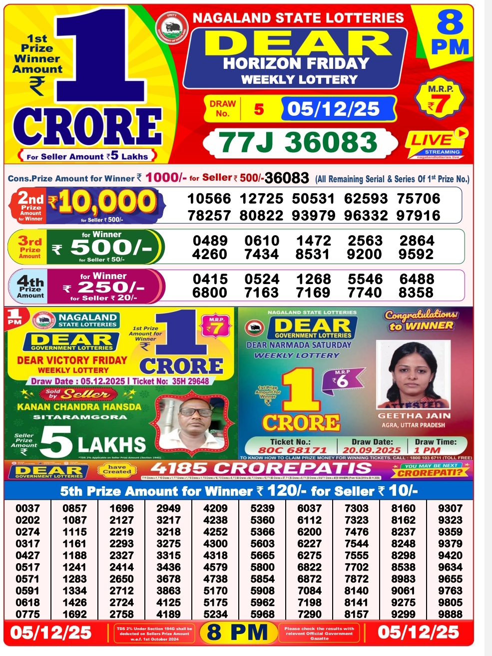 We update the results of 1, 6 and 8 pm very quickly every day. You can see the Nagaland Lottery results or dear lottery sambad results by simply refreshing the page when the results are published.