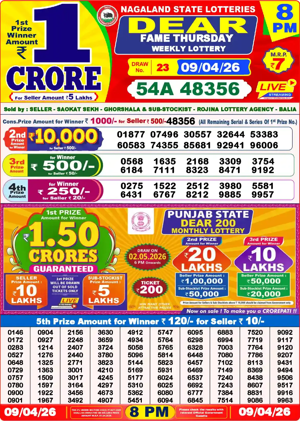 Nagaland State Lottery 9 Tarikh